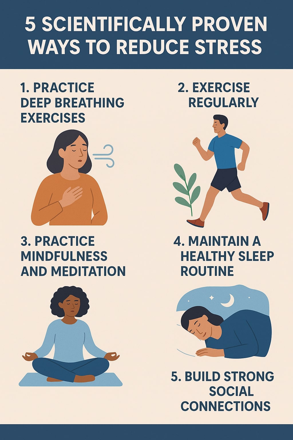 Stress is a natural part of life, but when it becomes overwhelming, it can harm both mental and physical health. Fortunately, science has identified effective methods to manage and lower stress levels. In this article, we’ll explore five scientifically proven ways to reduce stress that you can apply to your daily routine.
